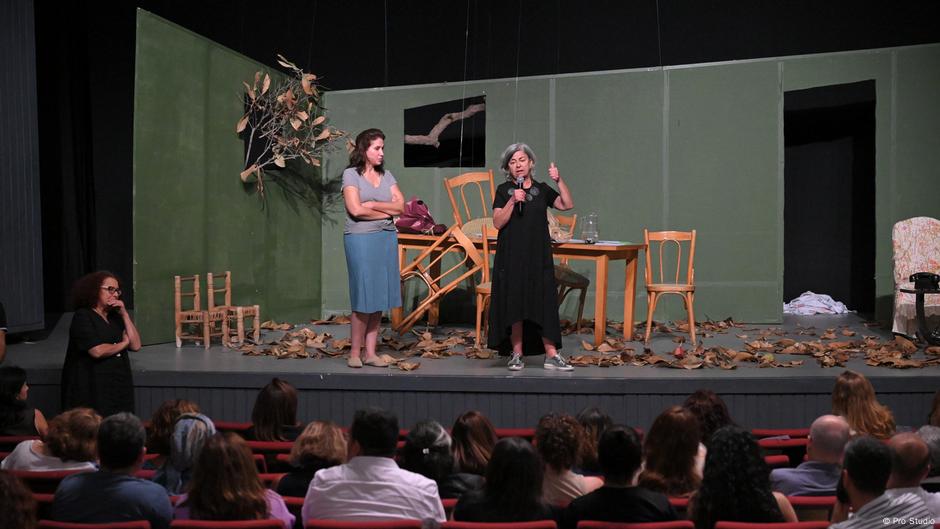 Lena menjelaskan dalam pembicaraannya dengan DW Arabia, "Bagi saya, penting untuk mengangkat tiga poros utama melalui pertunjukan teater ini.