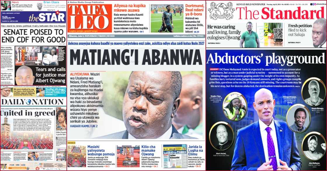 Pada hari Kamis, 3 Juli, surat kabar lokal secara luas meliputi upaya para pemimpin politik untuk menahan protes, yang memunculkan kekhawatiran akan potensi terkikisnya ruang demokrasi Kenya dan meningkatnya ketegangan antara protes publik dengan kontrol pemerintah.
