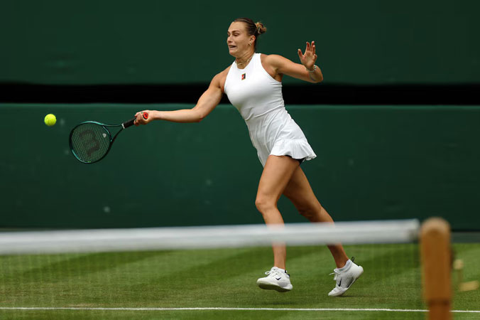 Juara Grand Slam tiga kali dari Belarusia, yang memiliki kesempatan emas untuk memenangkan gelar Wimbledon pertamanya setelah beberapa unggulan tersingkir lebih awal, memimpin di tiebreak setelah beberapa kesalahan dari Bouzkova dan menutup set tersebut dengan pemenang forehand.