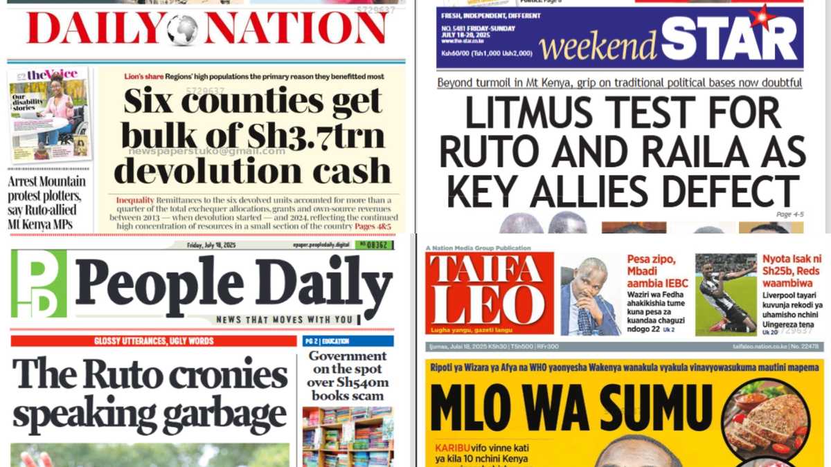 Pada Jumat, 18 Juli, surat kabar Kenya menyoroti badai politik yang dihadapi Presiden William Ruto dan pemimpin Gerakan Demokratik Oranye (ODM) Raila Odinga.