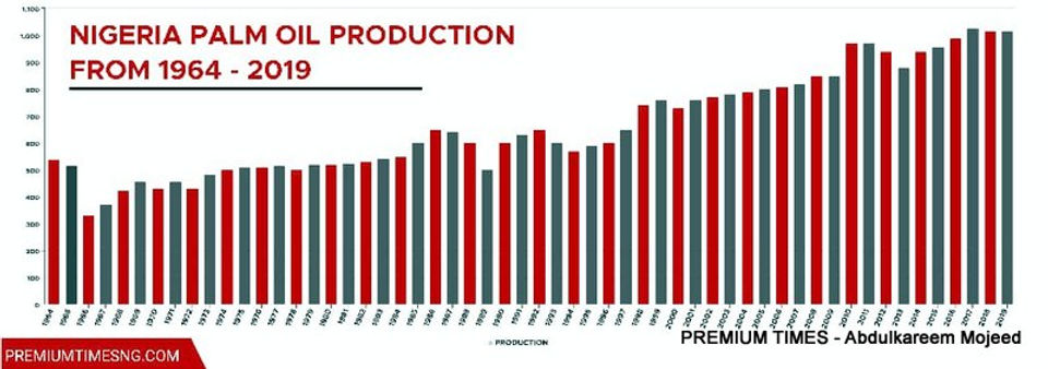 Dengan produksi saat ini sebesar 1,4 juta ton metrik per tahun, dan permintaan nasional yang melebihi 2 juta ton metrik, Nigeria kini menghabiskan lebih dari 600 juta dolar setiap tahun untuk mengimpor minyak kelapa sawit.