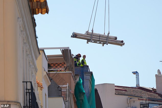 Mereka menambahkan: 'Kerusakan di sana sangat parah, dan dampak yang mungkin terjadi pada bangunan sekitarnya juga sedang dianalisis.'