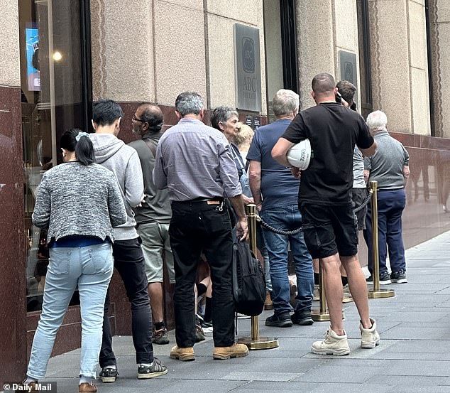 Barisan di luar ABC Bullion di Martin Place telah memanjang keluar dari pintu selama beberapa hari, karena emas mencapai rekor tertinggi sebesar AU$6.033,80 per ons troy - standar untuk mengukur logam mulia.